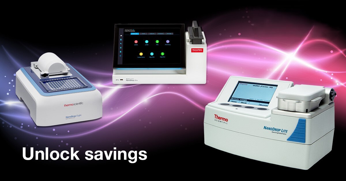 The affordable Thermo Scientific NanoDrop Lite Plus Microvolume Spectrophotometer enables any lab to assess purified DNA, RNA, and protein concentrations and purity ratios quickly and easily. While this entry-level instrument offers fewer features than our premium models, it delivers the same fast, accurate, reliable measurements from just 1–2 µL of sample using trusted NanoDrop technology.